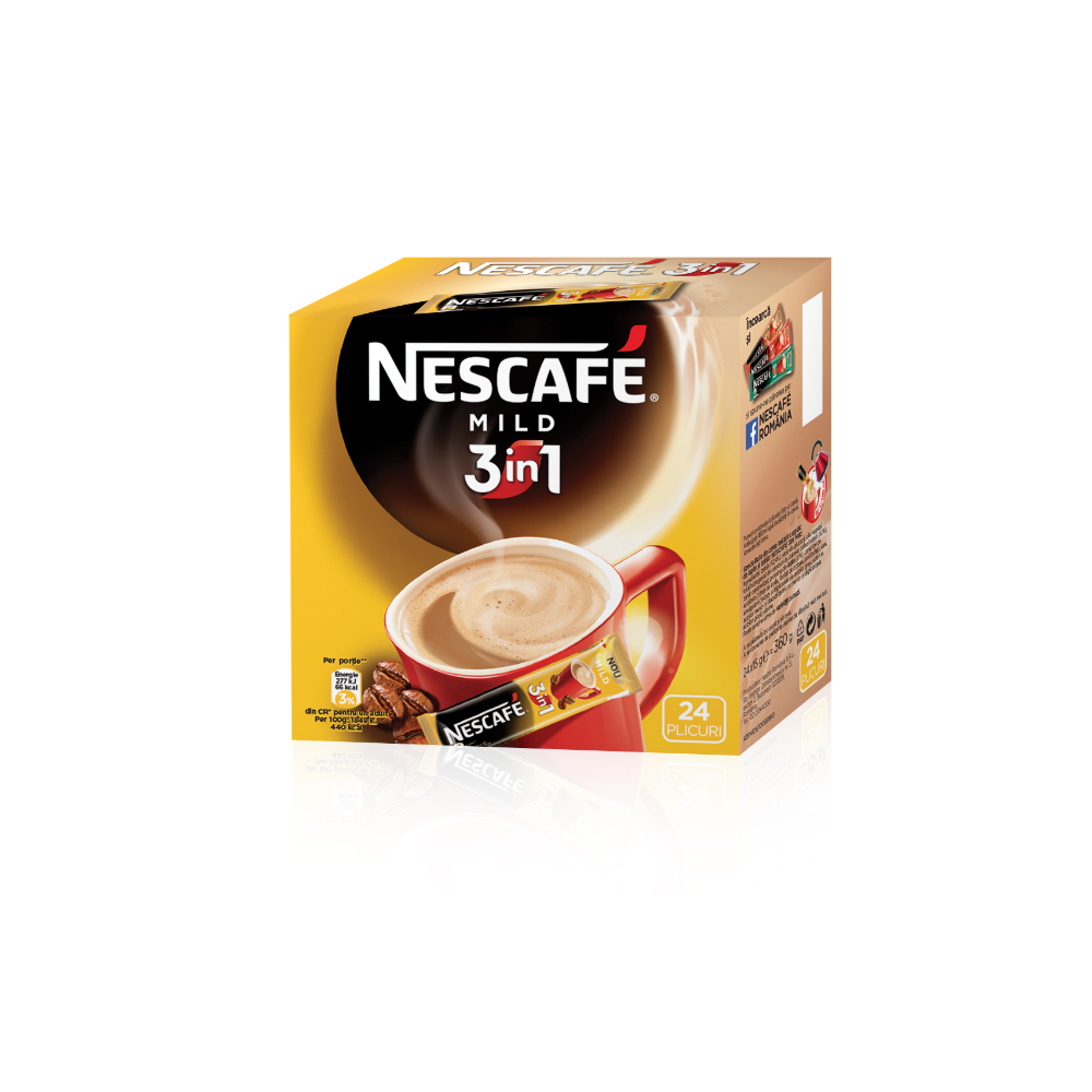 Combinatia ideala de cafea, zahar si gust de lapte, readuce consumatorilor cheful de distractie cu 1 gust de 3 x bun. Fiecare consumator poate invinge plictiseala alegand plicul preferat din gama NESCAFÉ 3 in 1: Original, Strong si Mild. Unitate de vanzare: 24 plicuri/cutie.