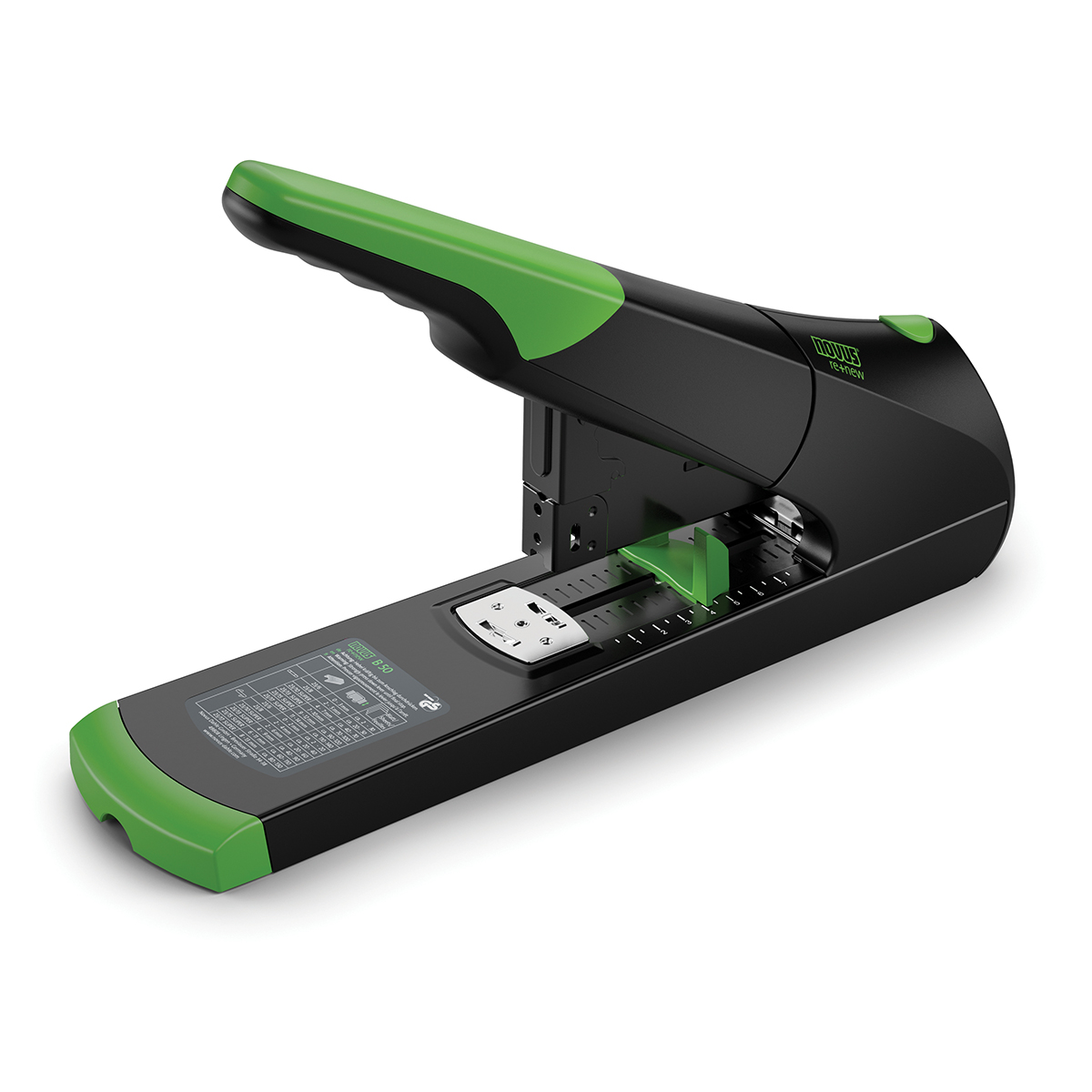 Perforator de birou durabil pentru utilizare grea pentru pana la 140 de coli de hartie cu sistem anti-blocare (ABS) pentru capsare convenabila, fara probleme. Dispozitiv complet metalic in carcasa din plastic.