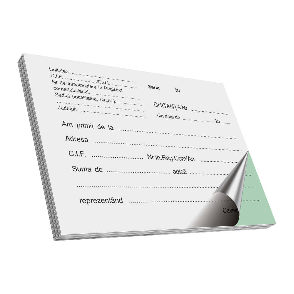Formulare pe hartie autocopiativa. 50 seturi/carnet. Unitate de vanzare: 3 carnete/pachet. Tipar: fata. Culori: a/c
