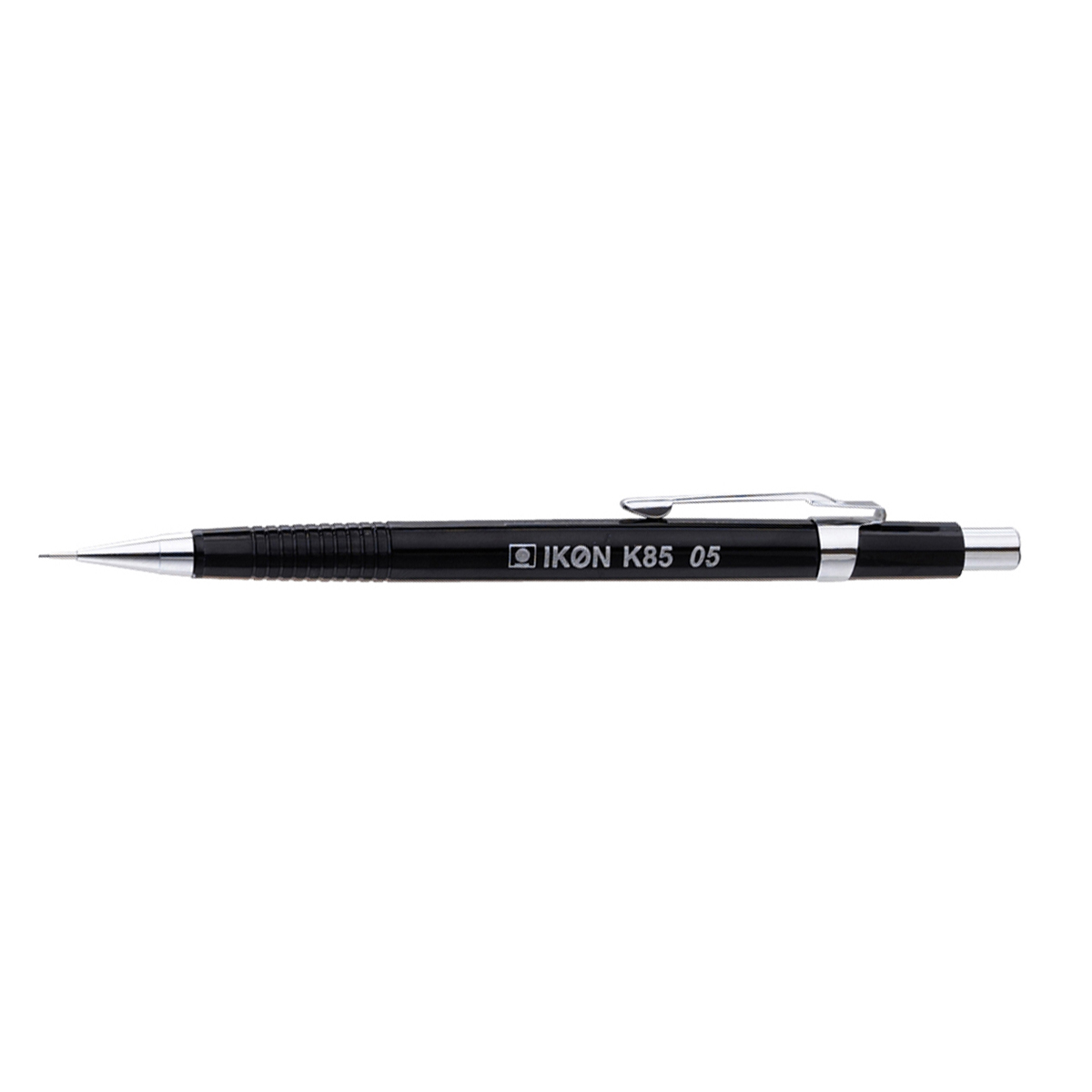 IKON K85 este un creion mecanic de calitate japoneza. Corp din plastic cu o prindere crestata pentru confort sporit, precum si accesorii metalice de culoare argintie si clema de buzunar. Include guma alba sub capacul mecanismului. Utilizeaza mine de 0.5 mm. Ambalat in cutii de 10 bucati.