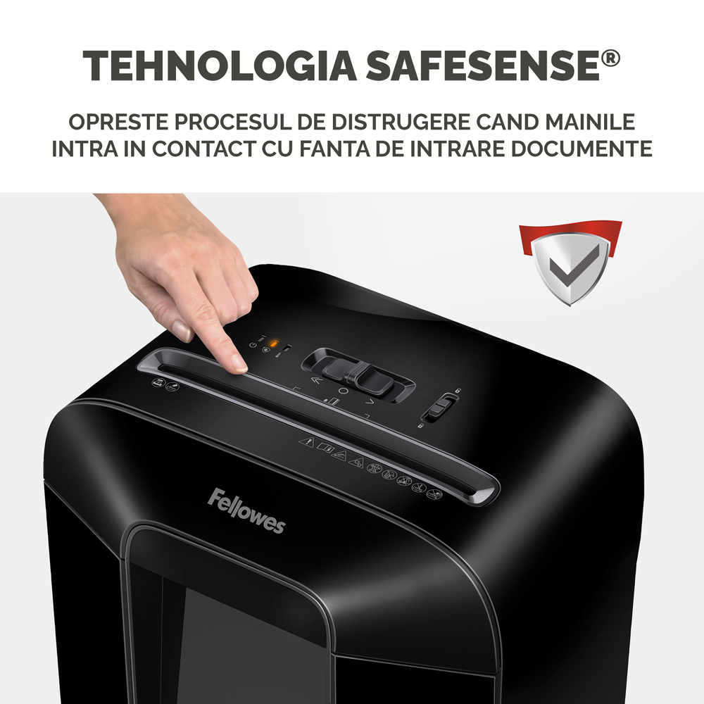 • Tehnologia SafeSense – opreste automat distrugerea cand mainile intra in contact cu fanta de acces documente