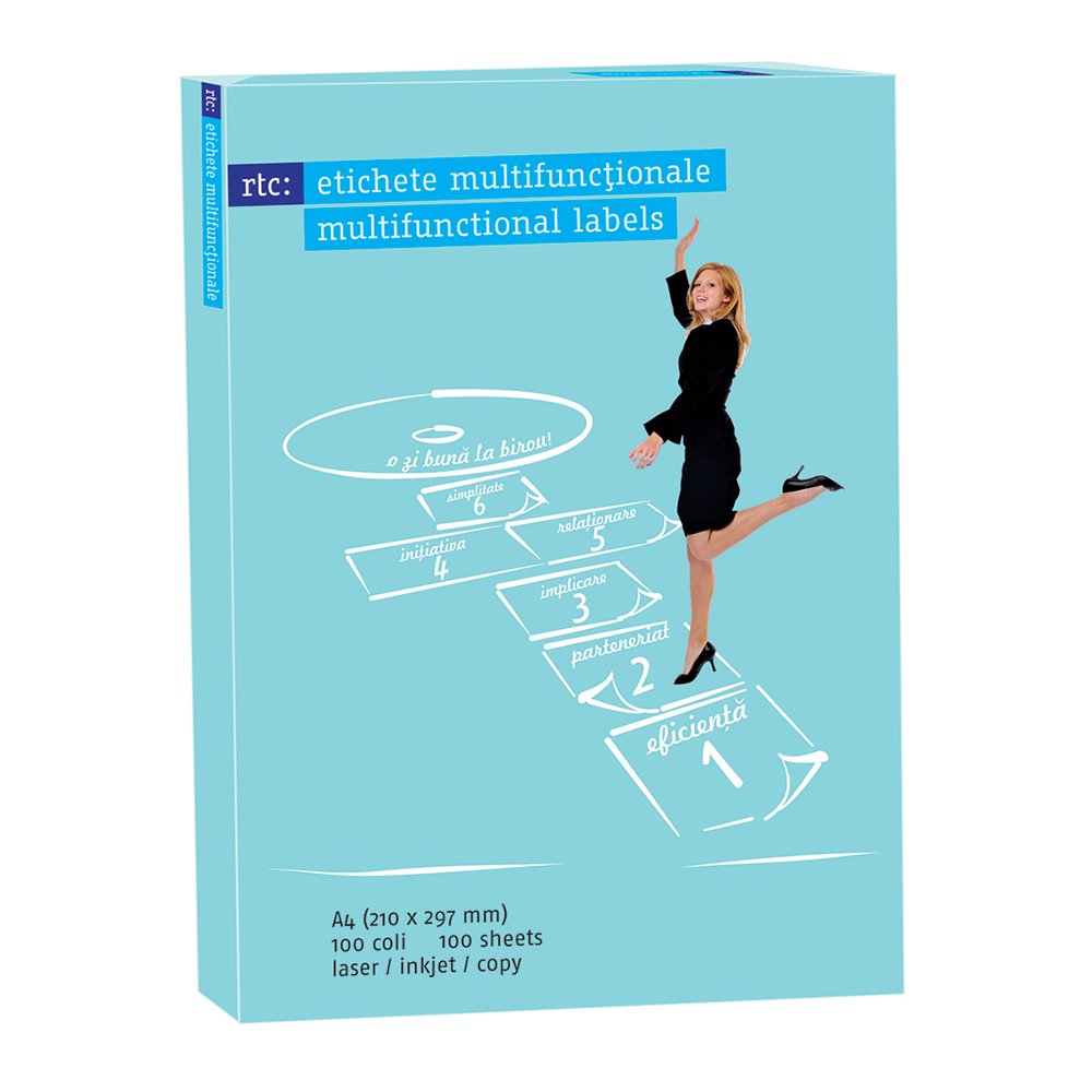 Etichete autoadezive albe, pentru imprimante laser, cu jet de cerneala si copiatoare. Disponibile intr-o gama variata de dimensiuni, cu colturi drepte, gata sa raspunda tuturor cerintelor consumatorilor. Utilizari diverse: etichetare produse, coduri de bare, preturi, inventariere, corespondenta si codificare. Format: A4. Unitate de vanzare: 100 coli/top.