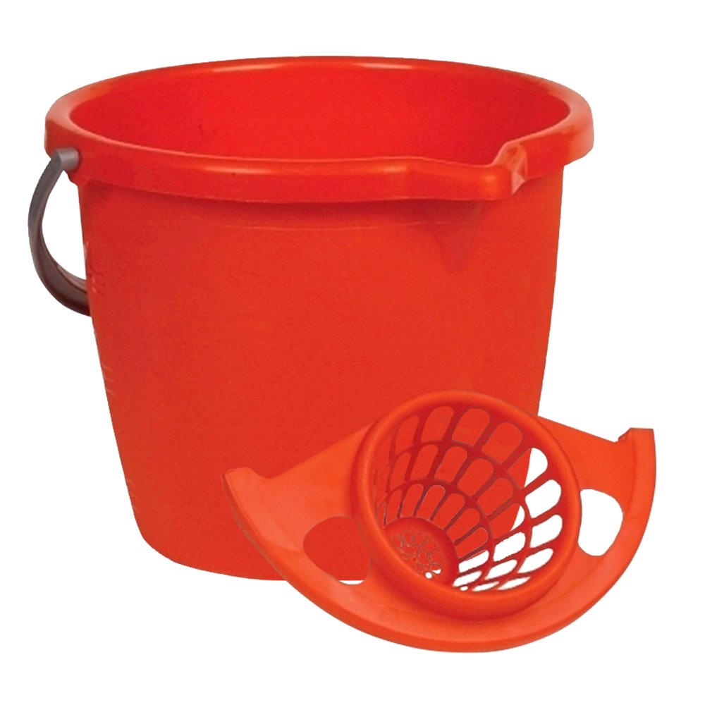 Galeata rosie din plastic rezistent, cu storcator detasabil pentru mop si maner. Cu ajutorul storcatorului, mopul poate fi stors fara efort.