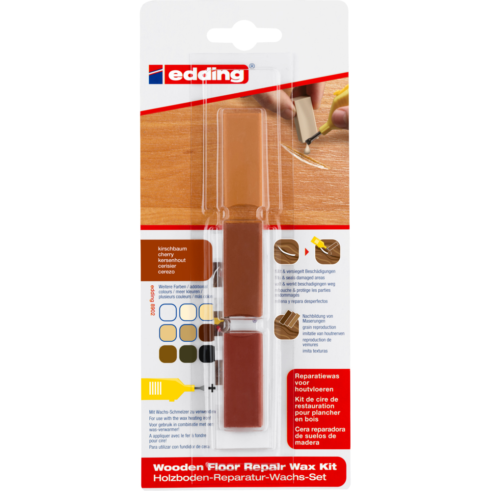 Transforma zgariaturile si deteriorarile pardoselilor din lemn intr-o amintire cu Kitul Edding 8902 de ceara pentru reparatii pardoseala. Acest set este o solutie inovatoare pentru repararea rapida a daunelor cauzate parchetului, laminatului si altor suprafete din lemn expuse la uzura intensa. Ceara dura este compusa dintr-un amestec de ceruri minerale, colorate cu pigmenti naturali, si poate fi topita usor folosind topitorul de ceara Edding 8903, disponibil separat.