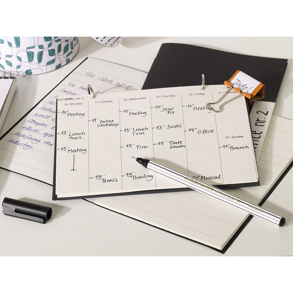 Acest fineliner este excelent pentru desen, scriere, schite si lucrari de layout pe hartie deschisa la culoare. Desi nu este recomandat pentru colorare, datorita varfului delicat, este perfect pentru a nota planuri si obiective in mod clar si detaliat.