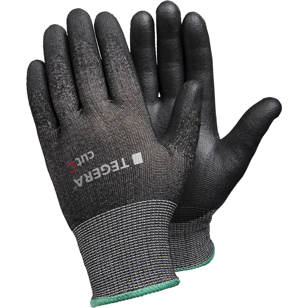 Manusi rezistente la taiere, PU, Poliester, Nylon, 13gg. Fir din fibra de sticla, Spandex, Tehnologie CRF, Cat. II. Culoare negru, spate respirabil, palma hidrofuga, impermeabila, pentru lucrari fine de asamblare. Arii de utilizare: utilaje si echipamente, automotive, transport, utilitati, constructii, logistica.