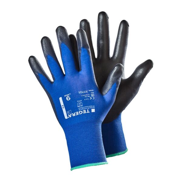 Cele mai subtiri manusi de lucru, pentru lucrari fine. Dexteritate si tactilitate deosebite, gratie tricotului ultrasubtire 18G. Acoperire din PU subtire in palma, cu aderenta si protectie la abraziune. Culorile albastru inchis si negru contribuie la mascarea murdqriei si extind utilizarea produsului.