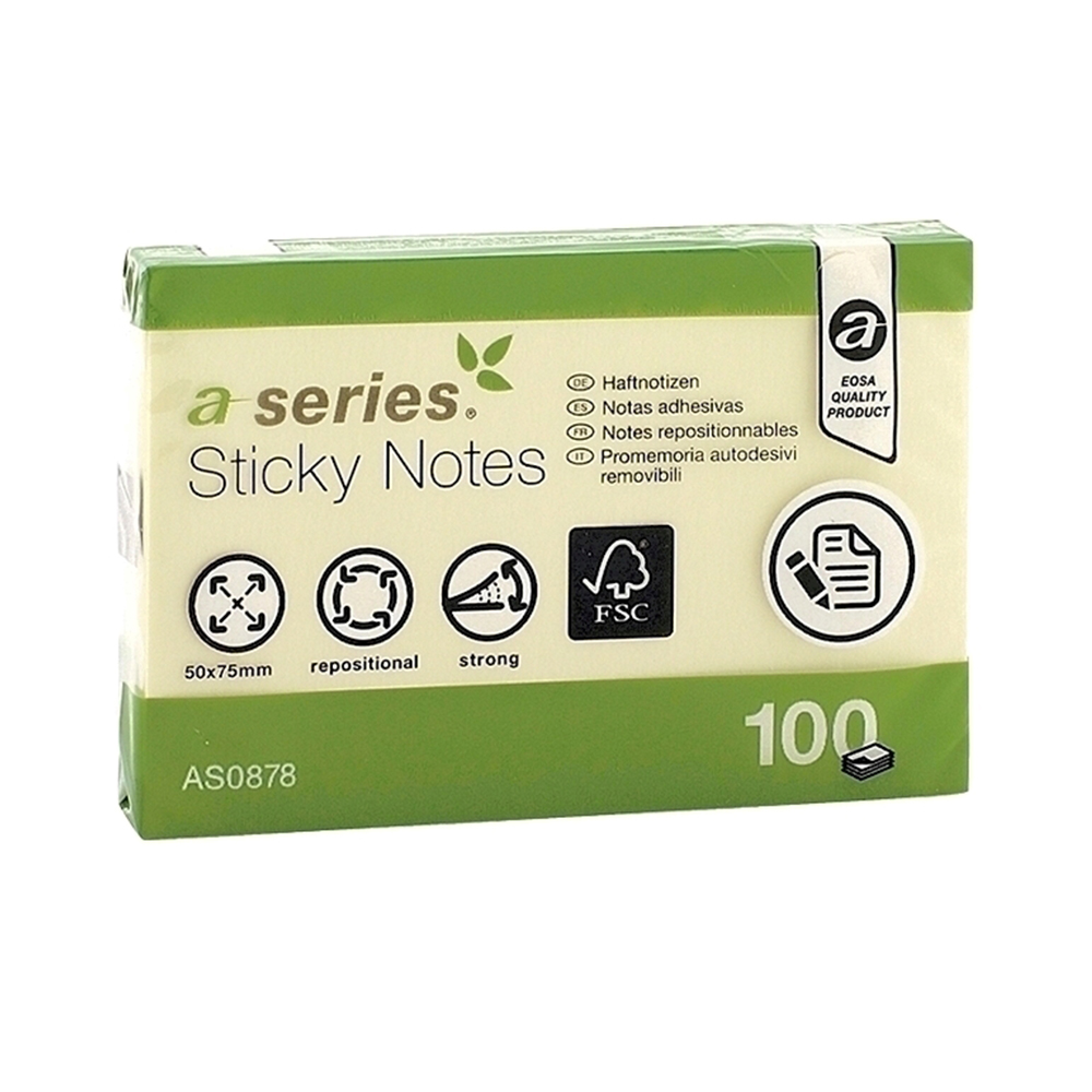 Notite adezive, A-Series, 50 x 75 mm, galben, 100 file.