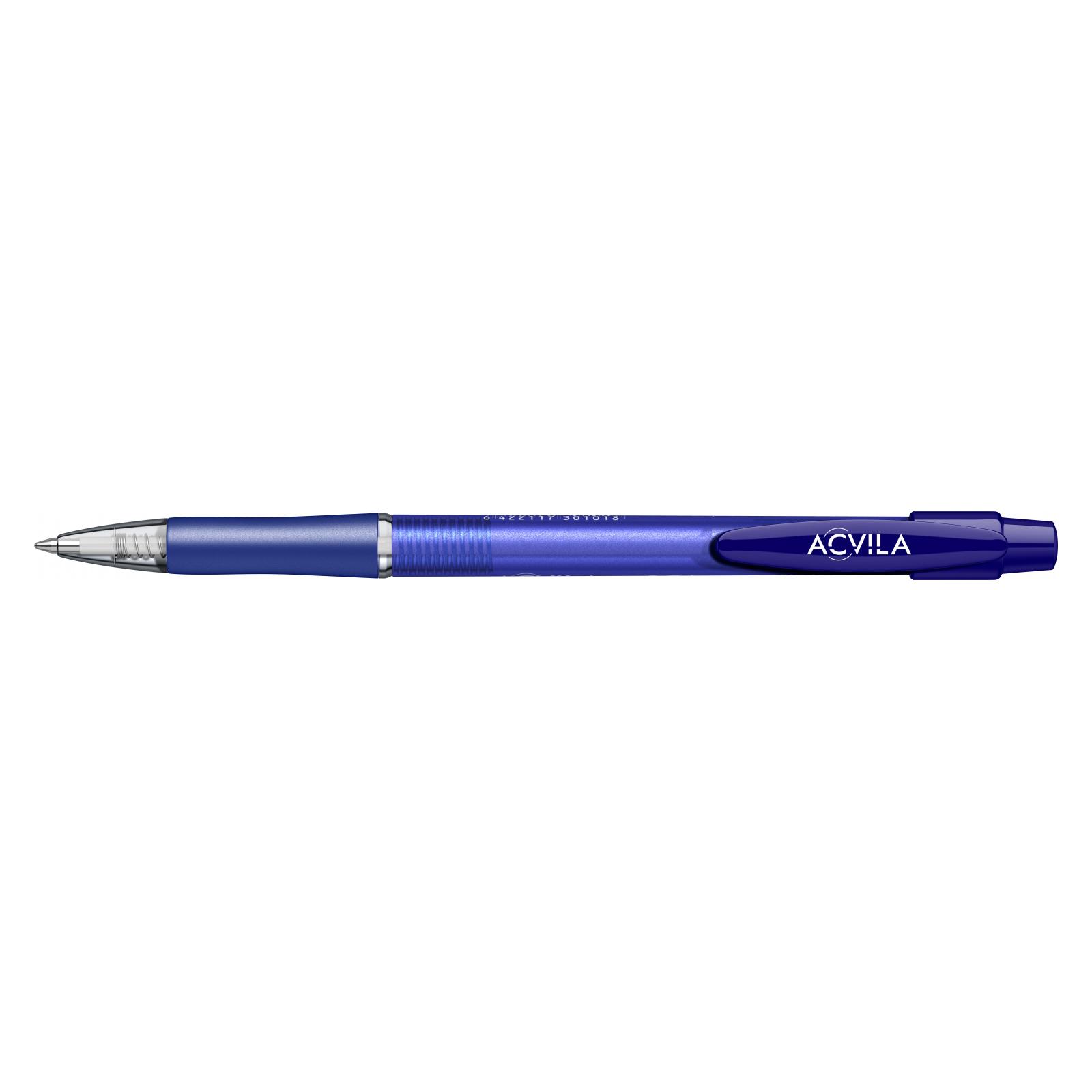 Pix retractabil cu corp din plastic in culoarea de scriere a minei si grip de cauciuc.