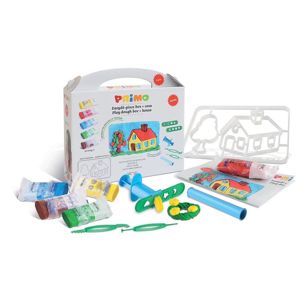 Pasta de modelaj fina, gluten-free, pachet 100 g, 4 culori asortate si o matrita cu diverse accesorii cu tema casa.