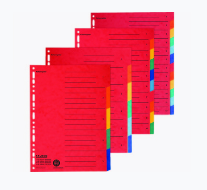 Separatoare Falken, A4, index 1-12, carton 220 g, 6 culori