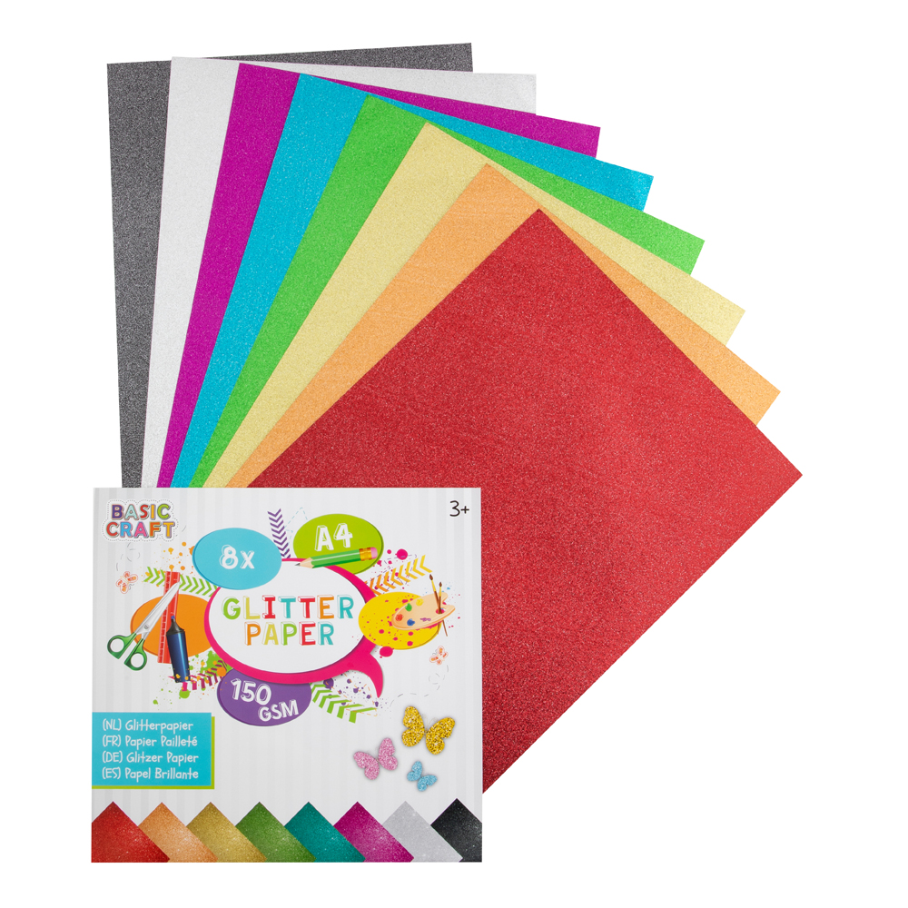 Set 8 coli carton glitter Creative Craft, 170g, diverse culori