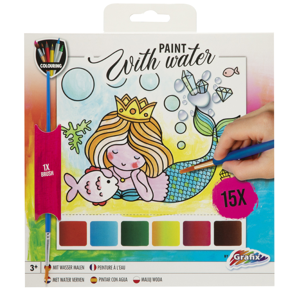 Carte de colorat pentru pictura cu apa. Cartea contine 15 coli de 20×20 cm si o pensula. Reutilizabil la nesfarsit! Potrivit de la 3 ani.