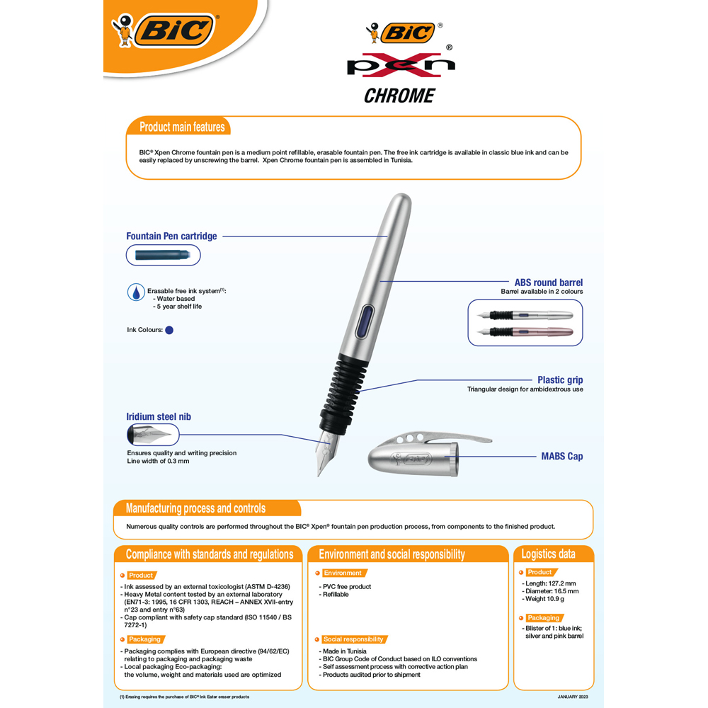 Scrisul notitelor a devenit mult mai usor cu ajutorul stiloului BIC Xpen. Dispozitivul sau de prindere triunghiulara inteligenta ofera o manevrabilitate suprema atat pentru dreptaci cat si pentru stangaci. Varful metalic de iridiu solid nu se va indoi cand apasati pentru o scriere consistenta. Reincarcabile, stilourile BIC XPen sunt compatibile cu cartusele universale scurte sau lungi.