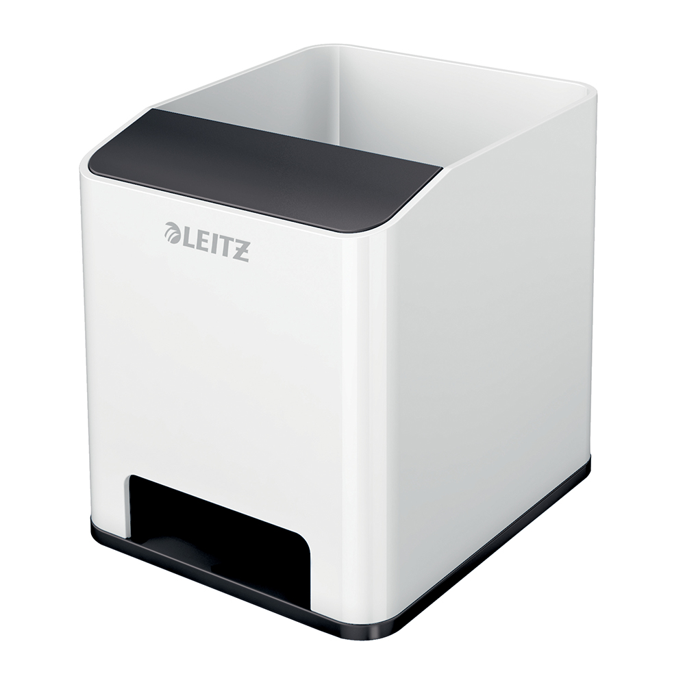 Calitatea premium a Suportului instrumente de scris, cu functia de amplificare sunet Leitz este completata de designul in culorile duale stilate si indraznete cu un finisaj lucios. Aceast suport pentru instrumente de scris completeaza perfect produsele din gama Leitz WOW. Design contemporan si modern care va arata perfect atat in spatiul de lucru de acasa cat si la birou.